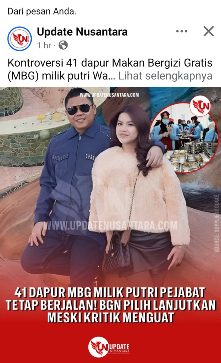 Radarriaunet | Jakarta - Polemik seputar 41 dapur Makanan Bergizi Gratis (MBG) di Sulawesi Selatan yang dikelola oleh Yasika Aulia Ramadhani, putri Wakil Ketua DPRD Sulsel, Yasir Machmud, memunculkan reaksi berlawanan dari berbagai pihak. Di satu sisi, ada pujian dan dukungan, namun di sisi lain kritik tajam terkait dugaan monopoli dan konflik kepentingan tetap mengemuka.